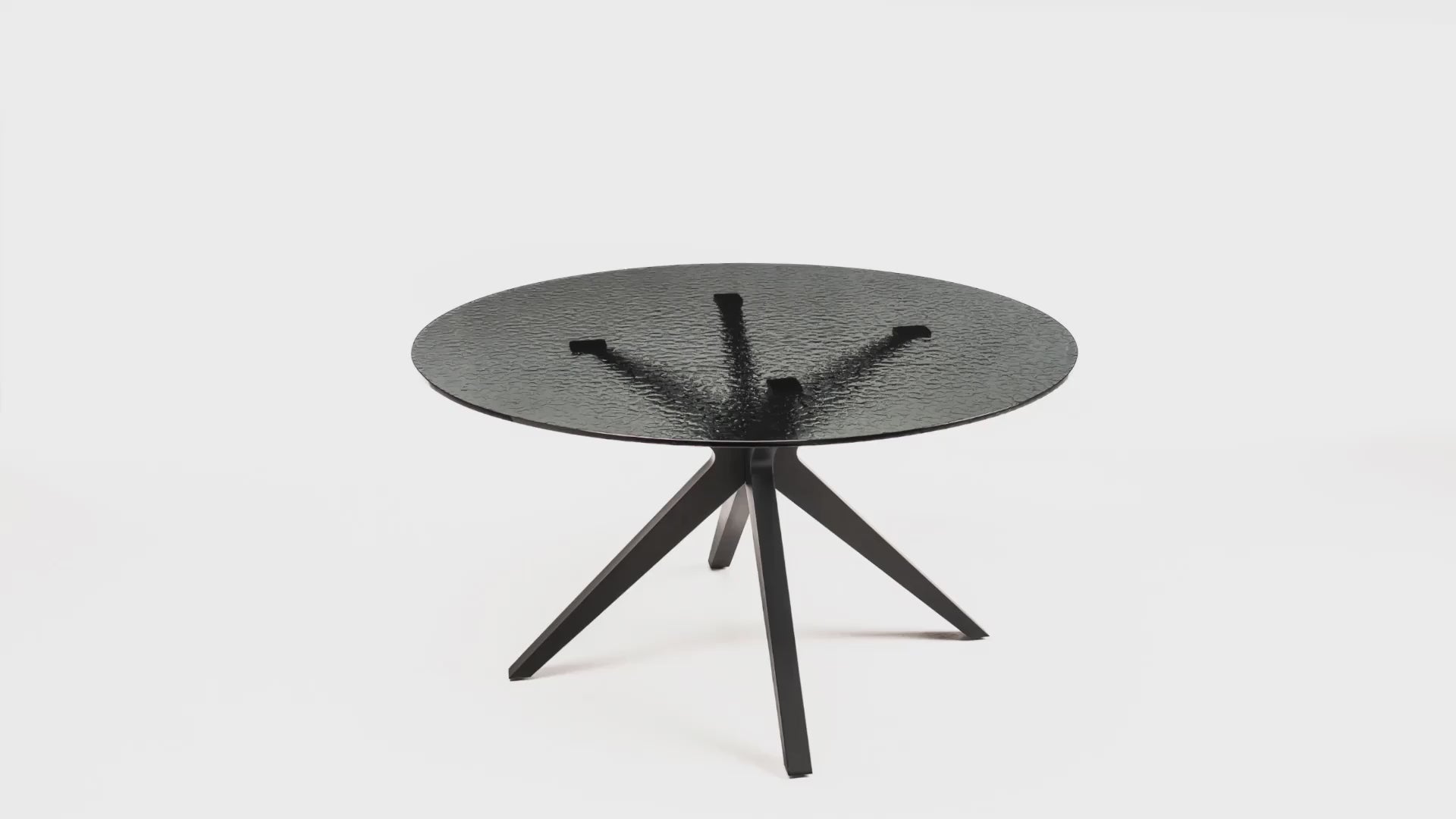 The Eivissa table is the perfect blend of elegance and modernity, thanks to its sophisticated smoked hammered glass top and sturdy painted metal base.