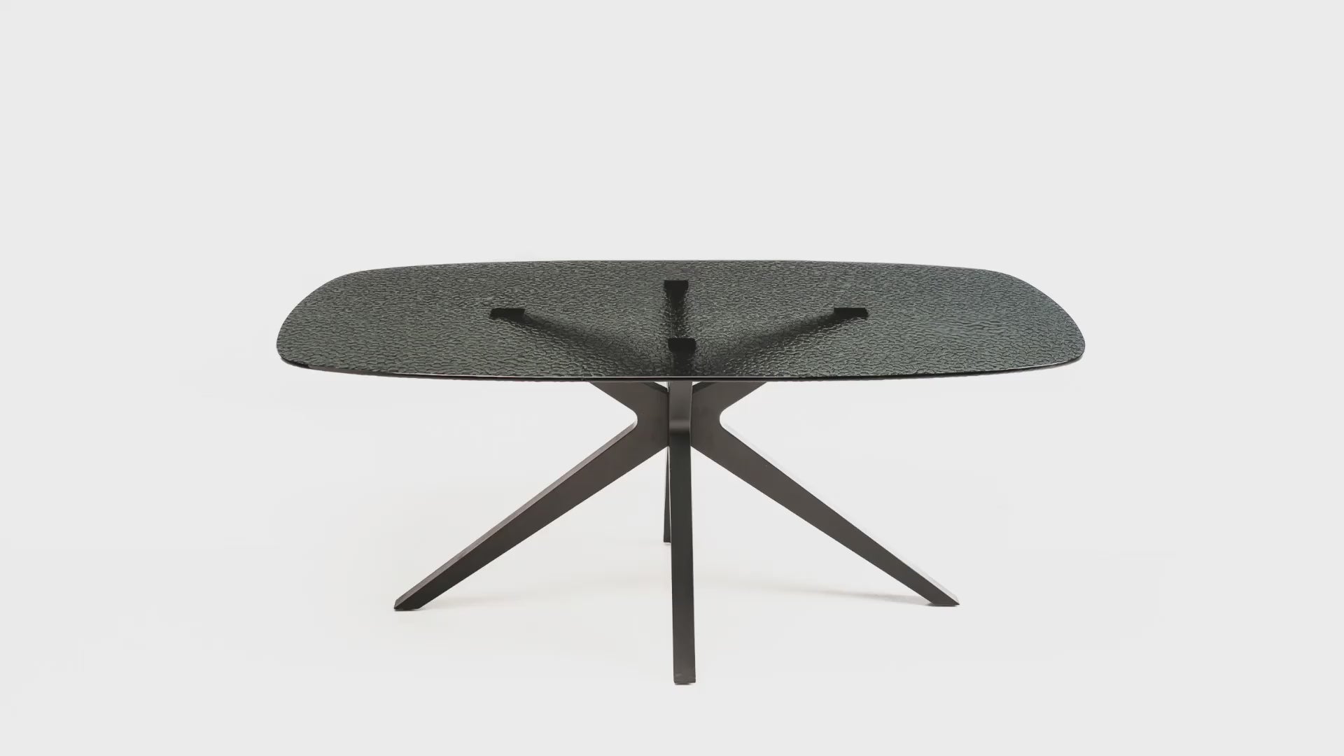 "Eivissa" modern fixed table with smoked hammered glass top and metal base
