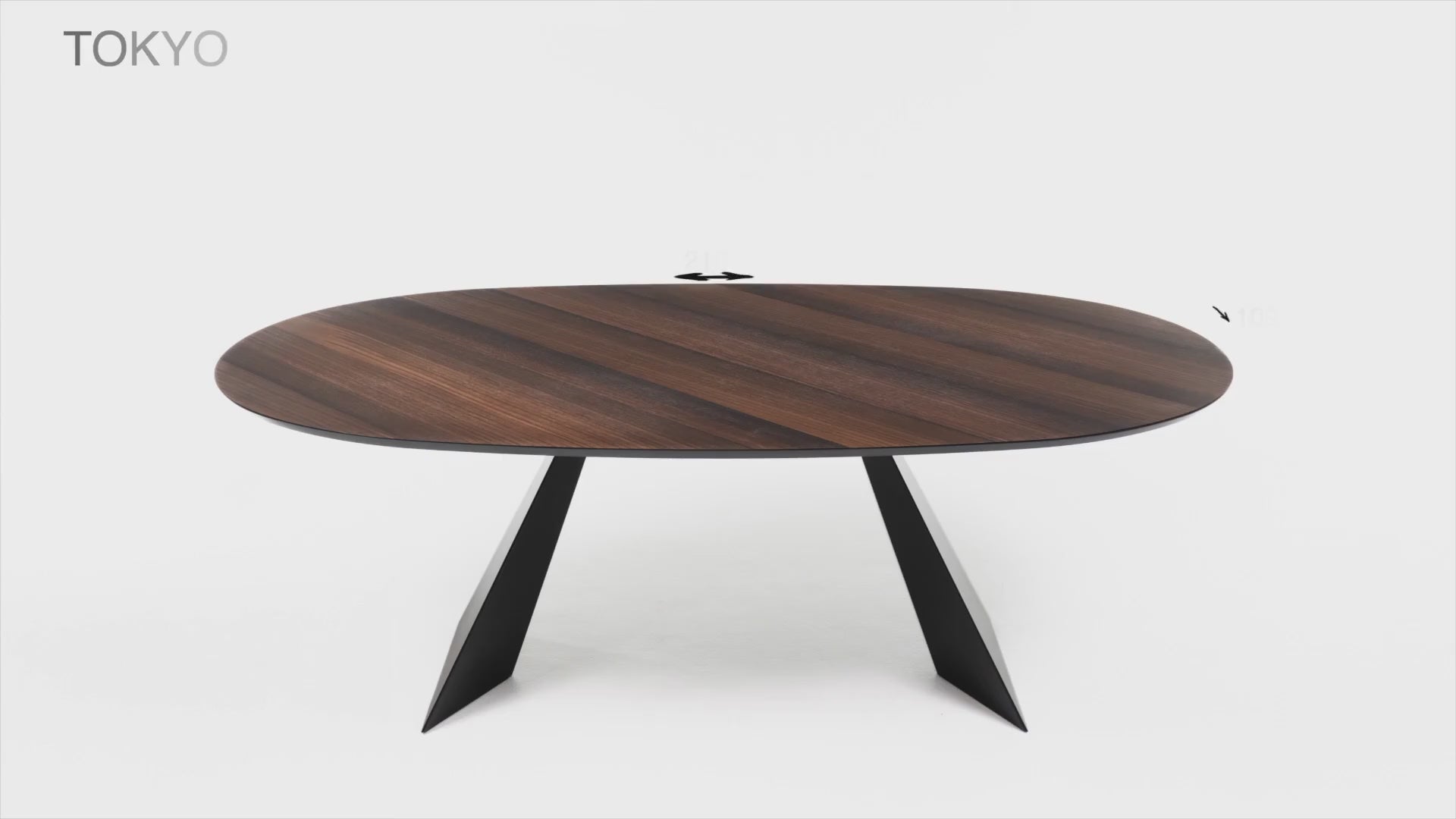 "Nargy" modern fixed dining table with metal base and oak top, 210x109 cm, 75 cm high